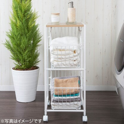 洗濯物を分別できるバスケット(19L×2)は、持ち運びができてとっても便利。斜め設計なので出し入れも簡単。