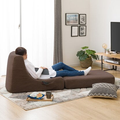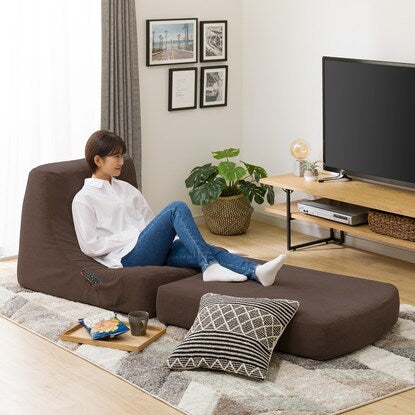 ※使用している小物等は演出品です。オットマン付き、100%チップウレタンで絶妙な座り心地を誇るローソファです。 重ねるとなんとパーソナルソファに大変身! 並べて使用すれば、脚まで伸ばし、ゆったりお昼寝にも。 座面の中央には体のラインに沿ってフィットしやすいデザインを採用しました。 側生地は高級感のあるコーデュロイを使用しております。 汚れた際には、カバーを外して頂き、家庭用洗濯機で洗濯できます(洗濯ネット使用) サイドポケットは、スマートフォンやイヤホンなど小物の収納に便利です。■組成 本体 :チップウレタン 中袋 :ポリエステル100% 側生地:ポリエステル91%、 ナイロン9%