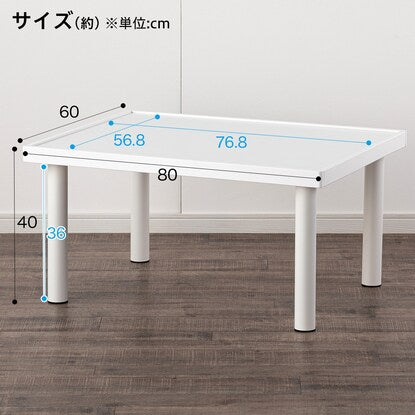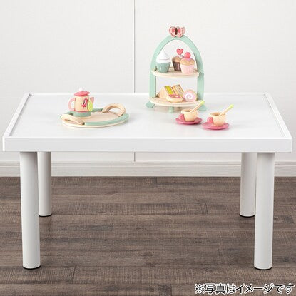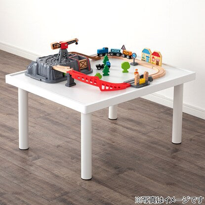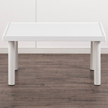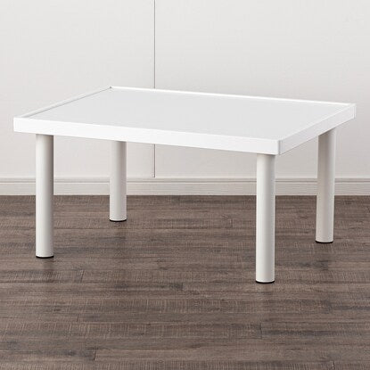キッズプレイテーブルです。 足を4本回すだけで、簡単に組立ができます。 4辺に縁があるので、小物が落ちにくいです。 せっかく作った積み木やブロックなどを壊さず、次の日も続きから遊べます。 勉強机や、少人数のキッズパーティーにも活躍します。 組立目安(1人):約10分 工具不要全体:幅80×奥行60×高さ40cm 縁部の高さ:5mm甲板:合成樹脂化粧パーティクルボード(メラミン樹脂) 脚部:スチール(粉体塗装) キャップ:ポリプロピレン フレーム:繊維板