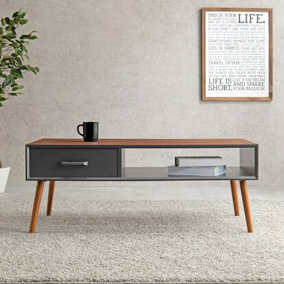 フチに段差が付いてるスタイリッシュなデザインのセンターテーブルです。