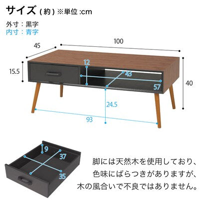 スタイリッシュなオープンスペース付きセンターテーブル 幅100cm(BR/BK)