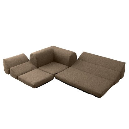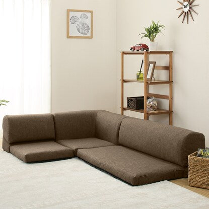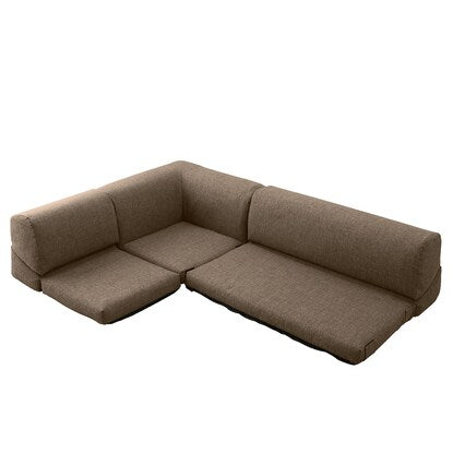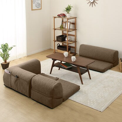 ポケット付きロータイプコーナーソファ3点セット(布 BR)