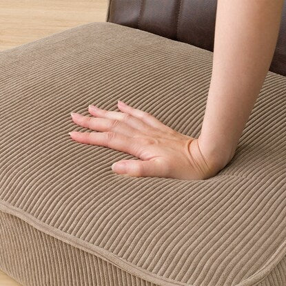 ■こだわりのデザイン 座面には高級感あふれるコーデュロイ素材をふんだんに使って、汗などかきやすい背もたれにはPVC素材を、エッジは同じコーデュロイでポイント入れ。 ■14段階のリクライニングでお好みの角度に お好みの角度を見つけることができます。 ■ポケットコイル搭載で上質な座り心地 耐久性と適度な弾力のある上質な座り心地に。 ■ワンルームでも使いやすいロースタイル 高さのあるソファなどに比べ、お部屋を広々と演出することができます。