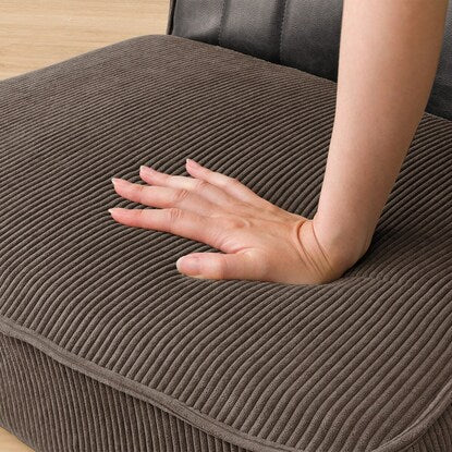■こだわりのデザイン 座面には高級感あふれるコーデュロイ素材をふんだんに使って、汗などかきやすい背もたれにはPVC素材を、エッジは同じコーデュロイでポイント入れ。 ■14段階のリクライニングでお好みの角度に お好みの角度を見つけることができます。 ■ポケットコイル搭載で上質な座り心地 耐久性と適度な弾力のある上質な座り心地に。 ■ワンルームでも使いやすいロースタイル 高さのあるソファなどに比べ、お部屋を広々と演出することができます。