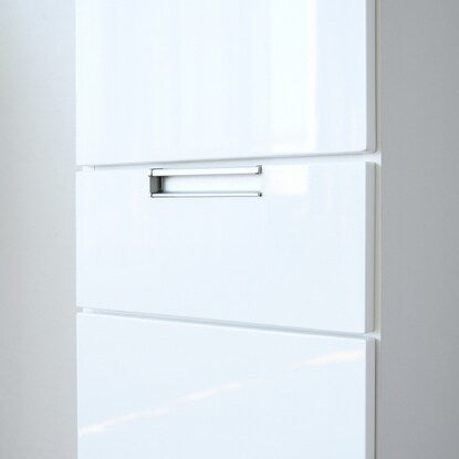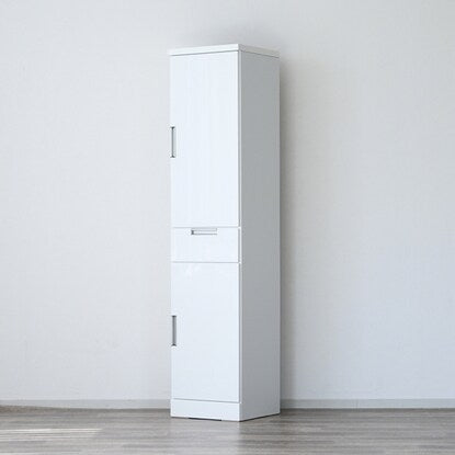 お手入れしやすい鏡面仕様キャビネット(上部板扉+下部扉)幅40cm(WH)