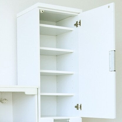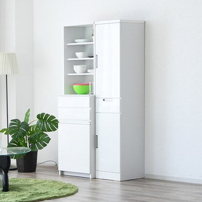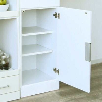 ※使用している小物等は演出品です。幅40㎝のスペースに食器や食品ストックなどがまとめて収納できます。 もちろんキッチン以外のお部屋にもご使用いただけます。 前面は艶のあるエナメル塗装。汚れてもサッと拭き取れます。 扉内は入れるものに合わせて高さを変えられる、可動棚付き。(扉内/上段4枚、下段2枚) 開閉しやすい大き目の取っ手。忙しい料理中も助かります。 届いてすぐお使いいただける完成品。 同シリーズはこちら
