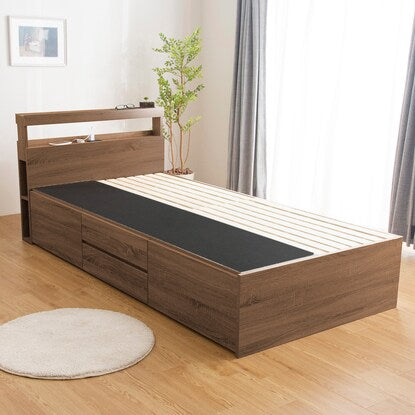 シングル棚付きチェストベッドフレーム(FRM WN)