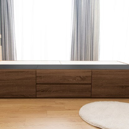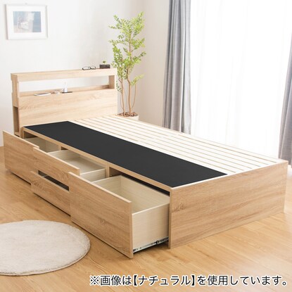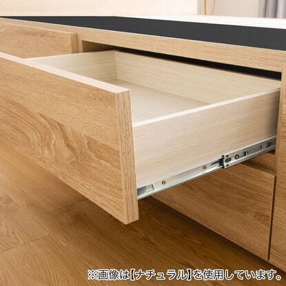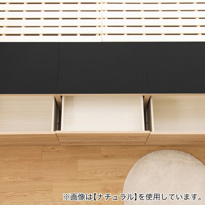 ベッド下には大小のスライドレール付き引出しで分類収納可能。