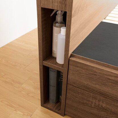 サイドは本や小物を収納できるオープンスペース付きで見た目はスッキリとしながらも充実の収納力です。