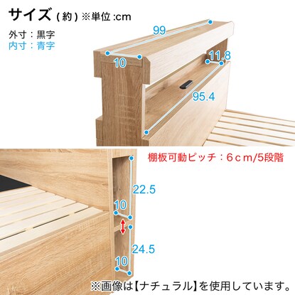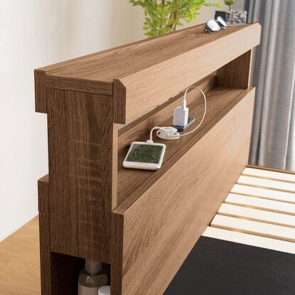 ヘッドボードは2段になっていて小物をたっぷり置くことができます。