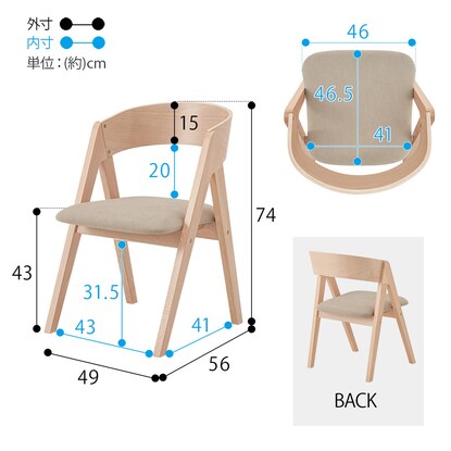 ビーチ材ダイニングチェア 2脚セット(NA/BE)