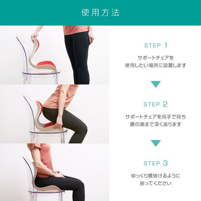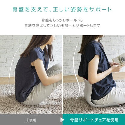 骨盤を支えてしっかりホールドし、背骨を正しい状態に保つことで、身体にかかる負担を軽減、背筋を伸ばして正しい姿勢へ!