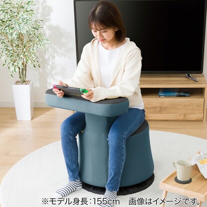 普段はダイニングテーブルなどと合わせ、椅子として使うのはもちろん、ゲームやタブレッド鑑賞時、後ろ向きに座って、テーブルの角度を調整すれば、肘置きに早変わり。
