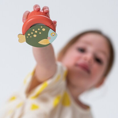 目的のピースを狙って捕まえ、マグネットから取り外すことで目と手の協調性を育みます。