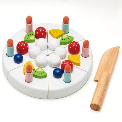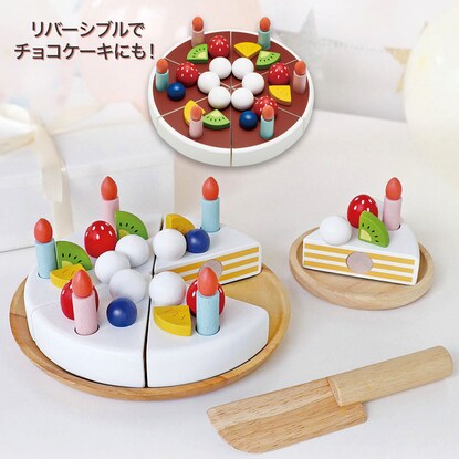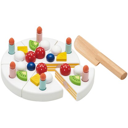自由にトッピング!ホールケーキを切り分けてみんなで楽しくままごとパーティー!