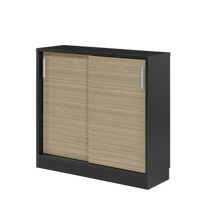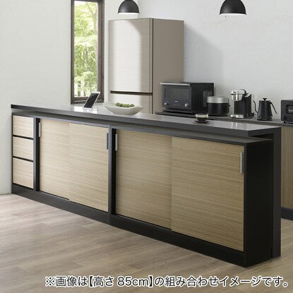 木目柄が美しい薄型キャビネット 引き戸(幅90×高さ85cm NGY)