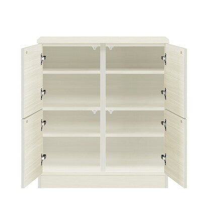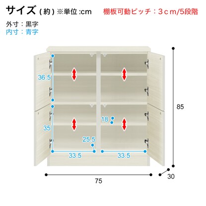 木目柄が美しい薄型スクエアキャビネット 扉2列(幅75cm 光沢仕様WW)