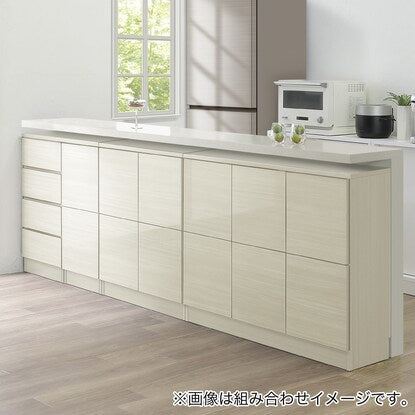 幅30~60cmまで1cm単位でオーダー出来る引き出し。キャビネットとの組み合わせでカウンター下などのデッドスペースや、ちょっとした隙間などにぴったり収まります。