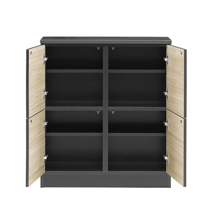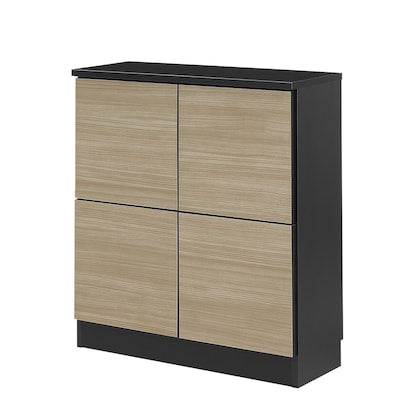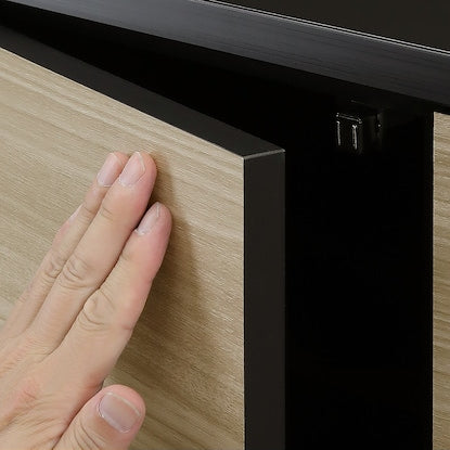 木目柄が美しい薄型スクエアキャビネット 扉2列(幅75cm NGY)