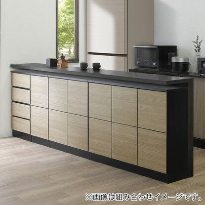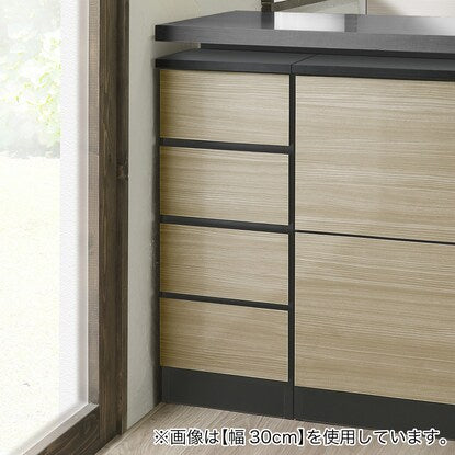 幅30~60cmまで1cm単位でオーダー出来る引き出し。キャビネットとの組み合わせでカウンター下などのデッドスペースや、ちょっとした隙間などにぴったり収まります。