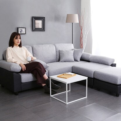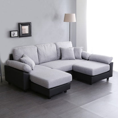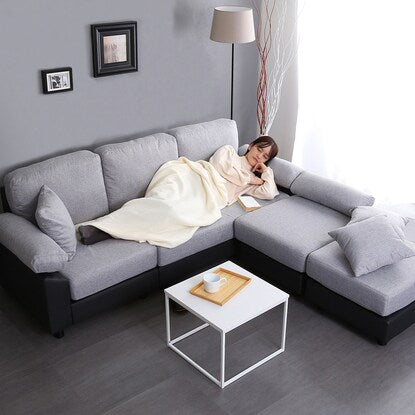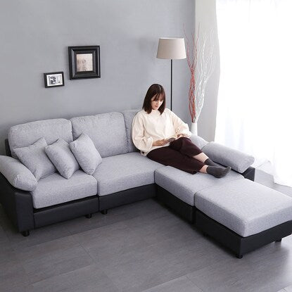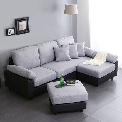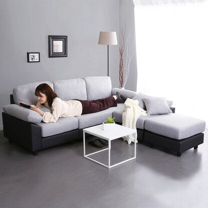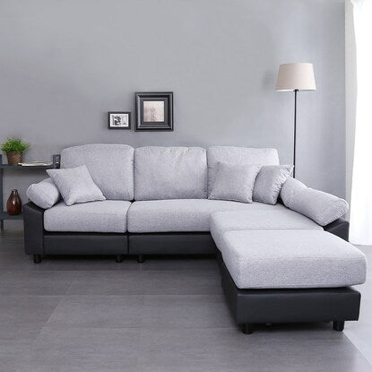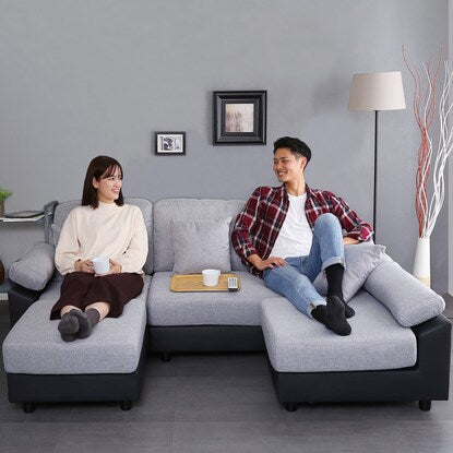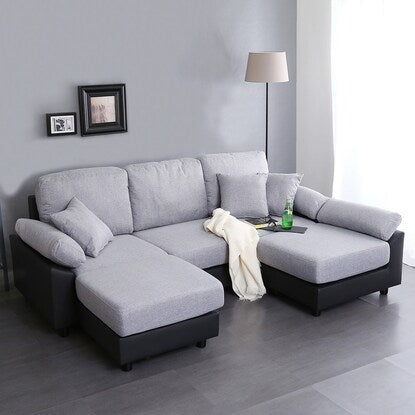 PVC×布張り5人掛けコーナーカウチソファ(GY/BK)