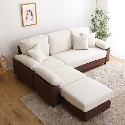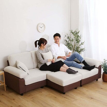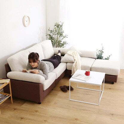 自由に動かせるカウチ部分が2つあるので、来客時などレイアウトによって最大5名まで座れます。