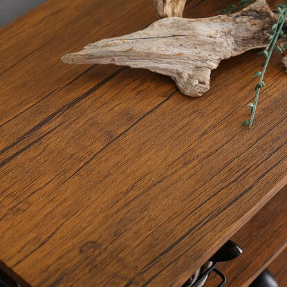 重厚感のあるスチールフレームと、天板には温かみのある木目調PVCシートを使用しております。