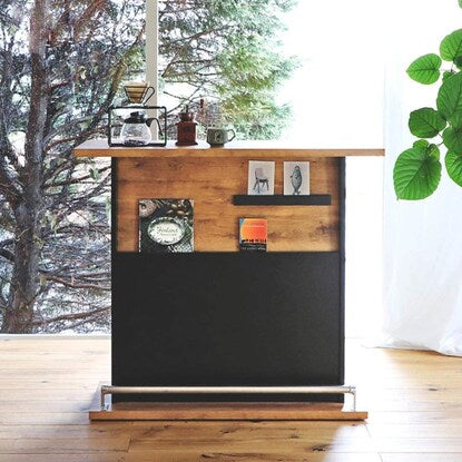 ヴィンテージテイストのリアルな木目とブラック色のシートがマッチしたおしゃれアイテム。