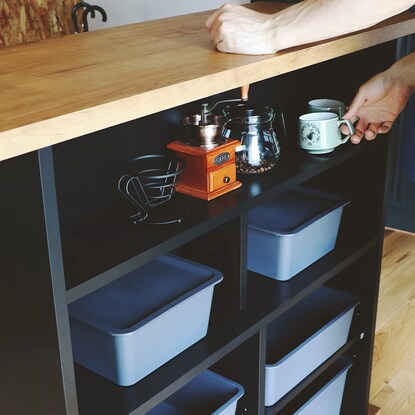カウンター天板のすぐ下には、マガジンラックがついており、雑誌などを飾ることができます。 Qサイズ:560(280個×2)個