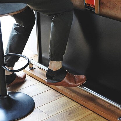 ステンレス製の上部な脚置きがおしゃれアクセントでお店の雰囲気に。