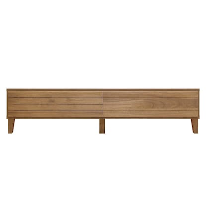 ※使用している小物等は演出品です。家具産地、大川の職人がつくる「フェント」シリーズ。 無垢板の素材感が引き立つシンプルなデザインで仕上げました。デッキ収納部はライン部分を貫通させているので、扉を閉めたままでもリモコン操作が可能です。 引き出しは箱組構造(ロッキング組)なので耐久性に優れています。 引き出しには防湿・防虫効果のある桐材を使用。レール付で開閉も楽に行えます。 脚高12.5cm。一般的なお掃除ロボットも通る仕様です。 天板を15mm外側に出しているので、壁の巾木をよけてテレビボード本体を壁にピッタリと設置することができます。 通常見えない背面も綺麗に化粧仕上げをしています。人にも環境にも優しい安全・安心な「環境対応家具」 当社の製品は低ホルムアルデヒドの素材を使用しています。 合板、パーティクルボードは「F☆☆☆☆」のものを使用しています。 接着剤にはノンホルマリンのボンドを使用しています。 塗料(オイル仕上げ)は100%植物油を使用した、環境にやさしく、人にやさしい塗料です。