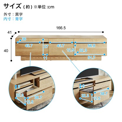 引出左内寸【縦オープンスペース】W11×D36×H27【上部】W43.7×D36×H8【下部】W38.7×D32.3×H12.5(cm)