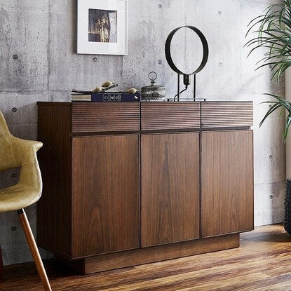 テレビ+チェスト+サイドボードのトータルコーディネートで収納力UP、リビング小物をスッキリ収納
