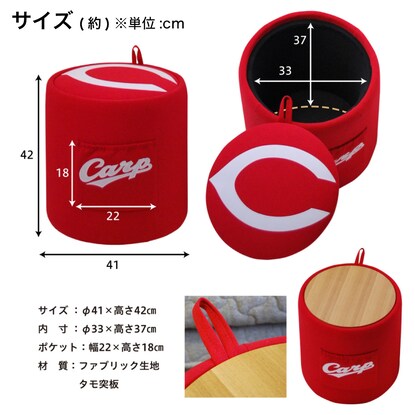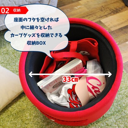 座面がフタ式になっていて、中にはグッズやユニフォーム、雑誌などがたっぷり収納できます。