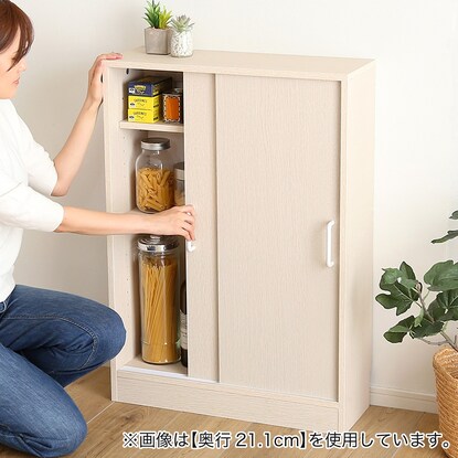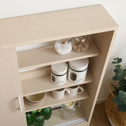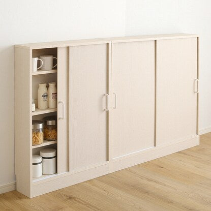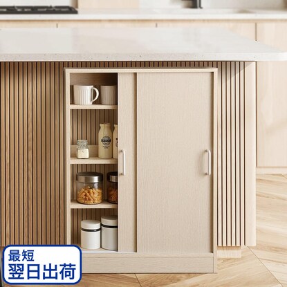 カウンター下に置ける高さ85cm、幅60cmのさわやかな引き戸収納です。