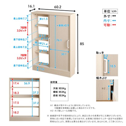 可動棚付きなので、物に合わせて高さを調節していただけます。
