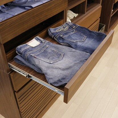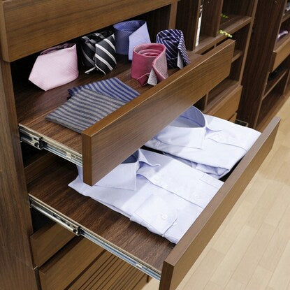上段のスライド棚には、お気に入りのYシャツやネクタイなどを上手に収納