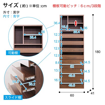 スライド棚上部には縦置き横置き可能なオープンスペースがあります