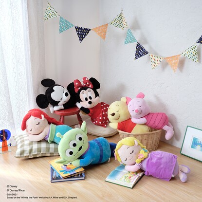 ■ミッキーマウスシリーズ はこちら > ふわふわでやさしい肌触り。 すやすや眠る姿がとっても可愛い。 おうち時間の癒しグッズ。 プレゼント用にもおすすめ。Ⓒ Disney