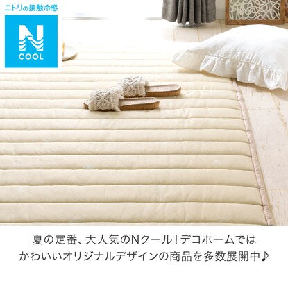 夏の定番、大人気のNクール!デコホームではかわいいオリジナルデザインの商品を多数展開中♪ ※デコホームでは、NクールWSPのラグはお取り扱いございません。ニトリが開発した触れると冷たい!と感じる「接触冷感」の生地を使用。定番の冷たさ「Nクール」のラグで、蒸し暑い夏もひんやり快適に。 海の風を感じるさわやかなシェル柄。ナチュラルな色合いとかわいい柄で、敷くだけでお部屋が明るくやさしい印象に! おしゃれさと快適さを両立した目にも足にも優しいラグで、お部屋がほっと安らげるリラックス空間に。エアコンや扇風機の風と合わせてゴロゴロするのも気持ちいい。 ブルーとモカのやさしい色合いのカラー展開で、色々なお部屋のテイストに合わせやすく、ほっこりさわやか。 適度なクッション性と接触冷感の生地ではだしでも心地よく、ジメジメ暑い日も快適に。 臭いの原因となる黄色ブドウ球菌の増殖を抑える抗菌・防臭加工で、菌の温床となりがちな床を清潔で安心できるスペースに。 裏面にすべり止め加工がついているのでズレにくく安心。 ご家庭の洗濯機で丸洗いでき、いつでも清潔さをキープ。 【ニトリの接触冷感(Nクール)】表生地 約2.2帖(約185×185cm) 抗菌防臭(表生地) 滑り止め加工(裏生地) 洗濯OK(ネット使用) ■組成 表生地:ナイロン100% 充填物:ポリエステル100% 裏生地:ポリエステル100% すべり止め:塩化ビニル樹脂 ヘム(ふち):ポリエステル100% ※「デコホーム」は、ニトリから生まれたインテリア雑貨のお店です。普段使いの日用品からお部屋のアクセントになるアイテムまで品質やデザインはもちろん、お手軽な価格で取り揃えています。