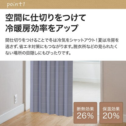 間仕切りで断熱・省エネ効果。リングランナー・フック付き。