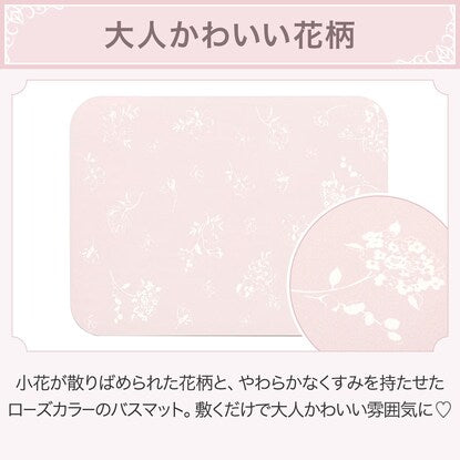 小花が散りばめられた花柄と、やわらかなくすみを持たせたローズカラーのバスマット。敷くだけでバスルームを大人かわいい雰囲気に演出♡