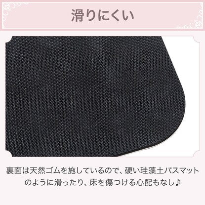 バスマットに珪藻土パウダーを使用した吸水の良いマットで、 お風呂上りの足裏の水滴をすばやく吸水。