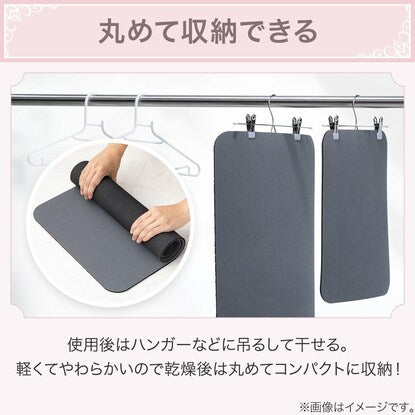 使用後はハンガーなどに吊るして干しておける。軽くてやわらかいので乾燥後は丸めてコンパクトに収納できて、脱衣所のスペースを有効活用!生活感を隠せて見た目もすっきり。