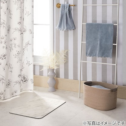 デコホームではかわいいオリジナルデザインの商品を多数展開中♪ 控えめな柄がほどよいアクセントのシンプルモダンなマーブル柄。敷くだけでバスルームを洗練された雰囲気に演出。※画像は使用イメージです。バスマットに珪藻土パウダーを使用した吸水の良いマットで、 お風呂上りの足裏の水滴をすばやく吸水。硬い珪藻土バスマットでのさまざまなお悩みを、珪藻土入りやわらかバスマットで解決!サラサラのやわらかい踏み心地で、足もとがヒンヤリすることや割れることもなく、安全に使える。裏面は天然ゴムを施しているので、硬い珪藻土バスマットのように滑ったり、床を傷つける心配もなし♪※画像は使用イメージです。使用後はハンガーなどに吊るして干しておける。軽くてやわらかいので乾燥後は丸めてコンパクトに収納できて、脱衣所のスペースを有効活用!生活感を隠せて見た目もすっきり。汚れてもサッと拭くだけで洗濯いらずの簡単お手入れ。手洗いもできるので、汚れが気になる場合は週に1回程度中性洗剤をつけたスポンジで洗い、水で流していつでも清潔に使える。※画像は使用イメージです。はさみで切れるので、お好みのサイズにカットして、脱衣所・洗面所・トイレ・玄関・キッチンなど様々なシーンで使える便利なバスマット。■組成 炭酸カルシウム、天然ゴム、ポリウレタン、ポリエステル、珪藻土 ※「デコホーム」は、ニトリから生まれたインテリア雑貨のお店です。普段使いの日用品からお部屋のアクセントになるアイテムまで品質やデザインはもちろん、お手軽な価格で取り揃えています。