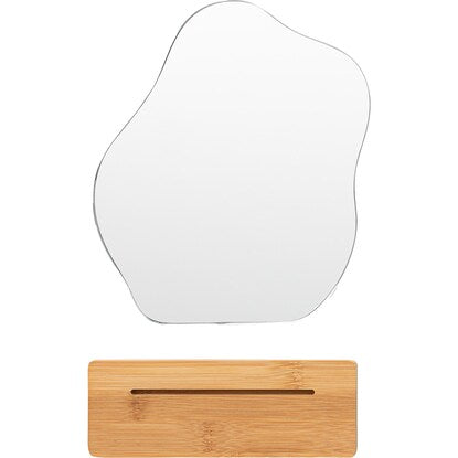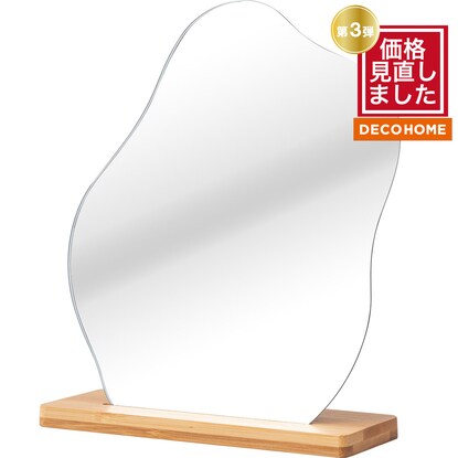 ■サイズ:20.5×10×24cm ■材質:竹、ガラス【取り扱い上の注意】 直射日光や強い光があたる場所に絶対に置かないでください。 ガラス鏡は落としたり堅いものにぶつかると、割れてケガをするおそれがございます。取り扱いには十分ご注意ください。 本商品は室内用です。極端に温度の高い場所や、直射日光のあたる場所、浴室などの湿度の高い場所での使用はお止めください。 手アカやホコリなどの軽い汚れは乾いた布で丁寧に拭いてください。 油など汚れのひどい場合は、布に薄めた中性洗剤を含ませ汚れを落とし、そのあと水分をよく拭き取り乾燥させてください。 お湯や中性洗剤液などに浸けたり洗わないでください。鏡を傷める原因になります。 また、クレンザーやタワシなどを使用しますとガラス面などにキズがつくことがありますのでお止めください。 ※「デコホーム」は、ニトリから生まれたインテリア雑貨のお店です。普段使いの日用品からお部屋のアクセントになるアイテムまで品質やデザインはもちろん、お手軽な価格で取り揃えています。