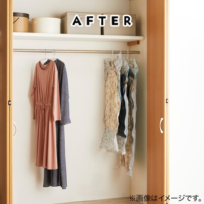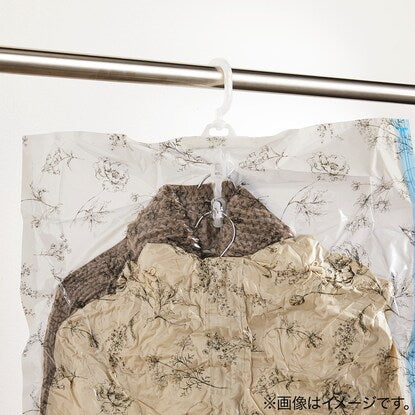 バブルにノズルを当てるだけで簡単圧縮 チャックの密閉状態が一目で分かるカラーチャック【数量】 2枚入り幅60×奥行135cm ハンガー部:10cm【収納物の目安】 ダウンコート・ハーフコートなど:2枚フィルム:ポリエチレン、ナイロン チャック:ポリエチレン バルブ:ポリエチレン、ポリプロピレン 弁:熱可塑性エラストマー スライダー:ポリプロピレン ハンガー(本体):ポリエチレン ハンガー(フック):ポリプロピレン【取り扱い上のご注意】 羽根製品には使用できません。羽根が折れて、衣類や圧縮袋を傷付けてしまいます。 フェザー20%以上の羽毛製品は使用できません。 持ち運びの際は引きずらないでください。袋が破れるおそれがあります。 本品に薬剤(防虫剤・防カビ剤)を使用しないでください。 保存期間は約6ヵ月です。6ヵ月を過ぎても圧縮状態に異常がなければ、そのまま保存できます。但しその場合は回復率が多少悪くなります。収納物のためには、6ヵ月に1度圧縮袋から出し天日干しをして再度圧縮し直してください。 ※「デコホーム」は、ニトリから生まれたインテリア雑貨のお店です。普段使いの日用品からお部屋のアクセントになるアイテムまで品質やデザインはもちろん、お手軽な価格で取り揃えています。