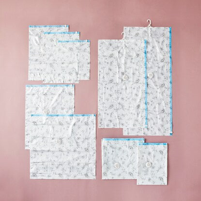クリーニングから戻ってきた衣類は、1日風を通してから圧縮袋に入れるようにしてください。(溶剤が残留していると衣類や圧縮袋にシミ等が生じる可能性があります。)