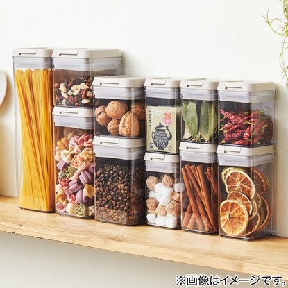 Sサイズのキャニスターを、ふたの上に積み重ねることができます。