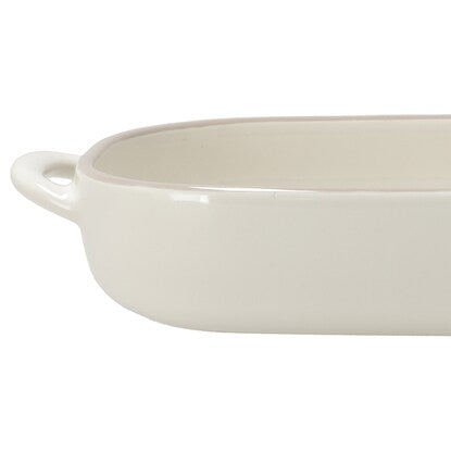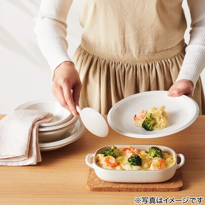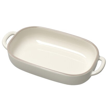 ■材質:磁器(耐熱温度差:150℃) ■サイズ(約):23×12×4cmガス火:使用不可 オーブン・電子レンジ・食洗器:使用可【取り扱い上のご注意】 空だきは絶対にしないでください。破損や火災の原因となります。 直火、魚焼きグリル等、熱源が近く、火が直接あたる可能性があるものには使用しないでください。 加熱後は本体が非常に熱くなっております。レンジなどから取り出す際はミトンなどを使い、やけどに十分ご注意ください。 テーブルなどに置く際は、鍋敷き等を使用してください。テーブルの変形、破損の原因になります。 急激な温度変化は、ひび割れなどの原因となりますので、ぬれたまま加熱したり、加熱直後に冷水に浸けたりしないでください。 強い衝撃により割れることがありますので、取り扱いにはご注意ください。 たわしや磨き粉、研磨剤入りスポンジのご使用は傷が付く場合がありますのでお止めください。 ご使用後は、やわらかいスポンジに、台所用中性洗剤をつけ、十分に洗ってください。 手作りのため、色にバラつきがある場合があります。 金属へラや先端が鋭利なものはご使用をお止めください。※「デコホーム」は、ニトリから生まれたインテリア雑貨のお店です。普段使いの日用品からお部屋のアクセントになるアイテムまで品質やデザインはもちろん、お手軽な価格で取り揃えています。